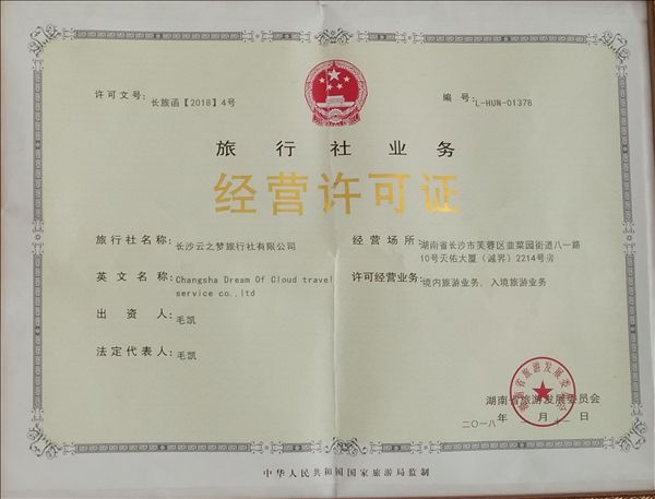 运营资质:云之梦旅游 旅游许可:L-HUN-01378